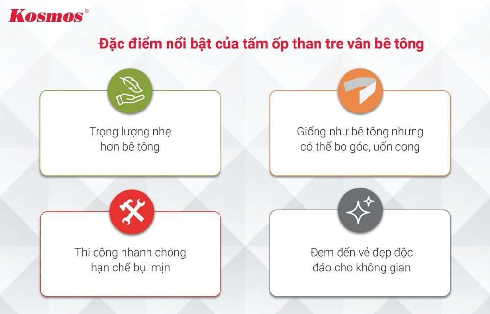 Đặc điểm nổi bật Tấm ốp than tre vân bê tông TT-835